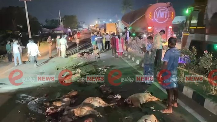 அரியலூர்- லாரி மோதி 20 செம்மறி ஆடுகள் பலி- பொதுமக்கள் மறியல்