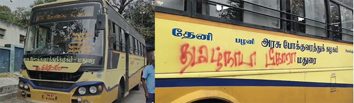 அரசு பஸ்சில் சர்ச்சை வாசகங்கள்.. மர்ம நபர்கள் கைவரிசை..