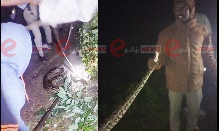 ஜோலார்பேட்டை- வீட்டின் அருகே 10 அடி நீள மலைப்பாம்பு மீட்பு..