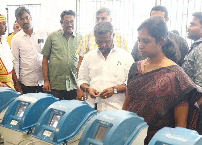 புதுக்கோட்டை மாவட்ட ஆட்சியரக வளாகத்தில் அமைந்துள்ள மின்னணு வாக்குப்பதிவு இயந்திர பாதுகாப்பு வைப்பறையில் வைக்கப்பட்டுள்ள ஆறு சட்டமன்ற தொகுதிகளுக்கான மின்னணு வாக்குப்பதிவு இயந்திரங்களின் முதல் நிலை சரிபார்க்கும் பணிகள் மேற்கொள்ளப்பட்டு வருவதைமாவட்டதேர்தல்அலுவலர்/மாவட்ட கலெக்டர் மு.அருணா… Read More »மின்னணு வாக்குப்பதிவு இயந்திரம் சரிபார்ப்பு