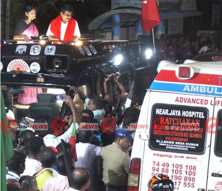 தேர்தல் பரப்புரை- ஆம்புலன்ஸ்க்கு வழிவிட்ட எம்பி கனிமொழி