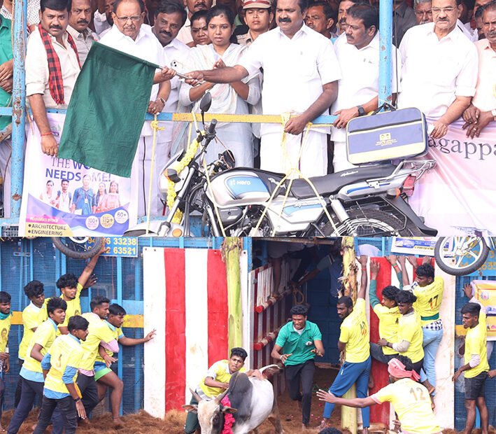 தச்சங்குறிச்சியில் ஜல்லிக்கட்டு .. அமைச்சர்கள் துவங்கி வைத்தனர்