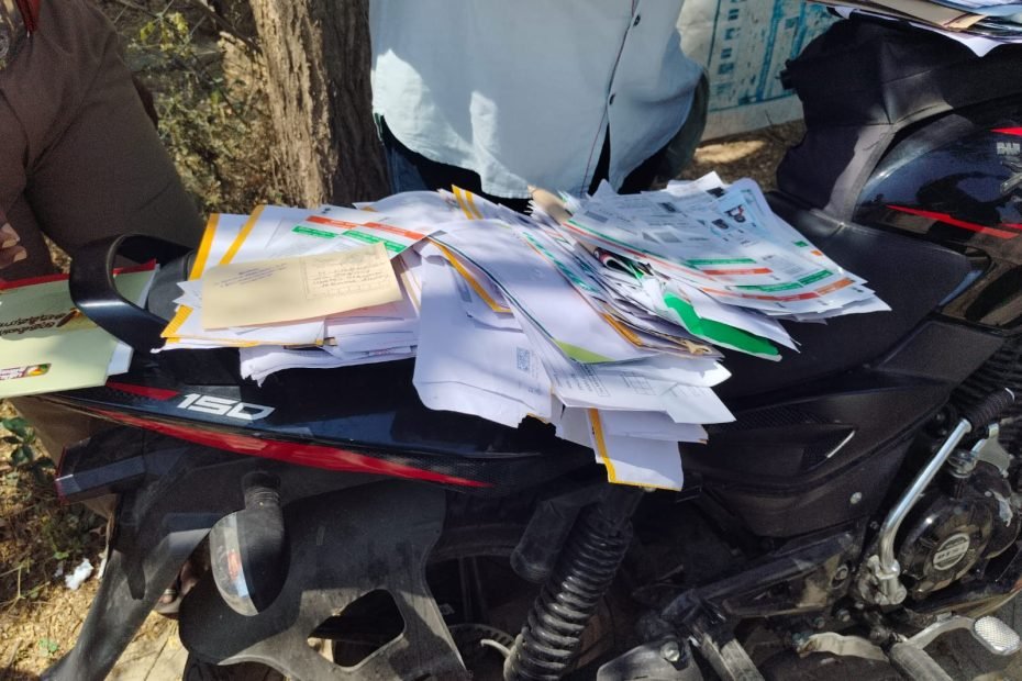 லால்குடி…. ரோட்டில் கொட்டப்பட்ட ஆதார் அட்டை, தபால்கள்…..