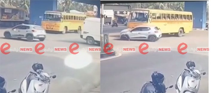 கோவை- சாலையை கடக்க முயன்ற கார்- பள்ளி பஸ் மோதிய சிசிடிவி..
