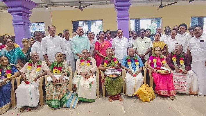 புதுகை- மூத்த தம்பதிகளுக்கு மங்கல பொருட்கள் வழங்கி மரியாதை