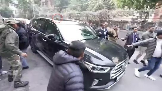 கெஜ்ரிவால் கார் மீது கல்வீச்சு..