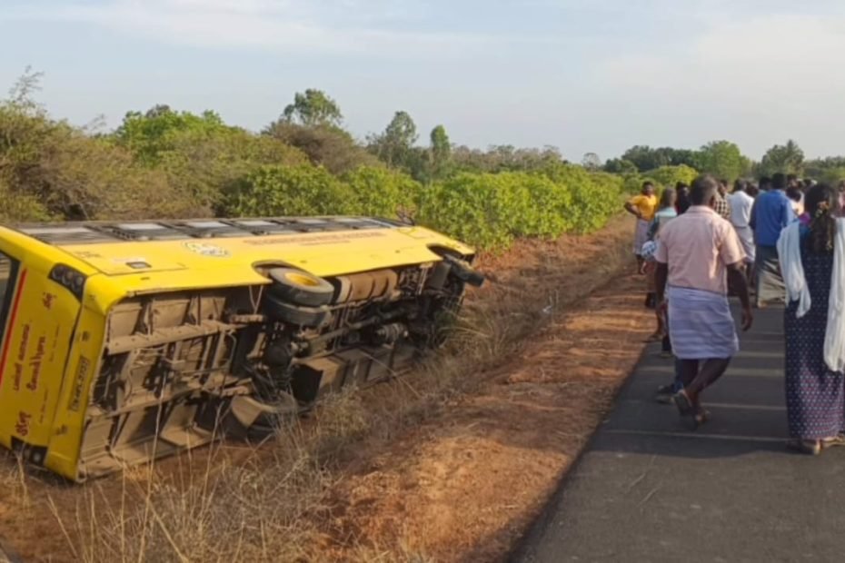 ஜெயங்கொண்டம்… பள்ளி வேன் கவிழ்ந்து 5 குழந்தைகள் காயம்