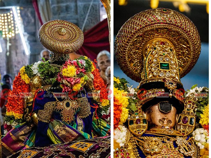 அருள்மிகு ஸ்ரீரங்கம் அரங்கநாத சுவாமி திருக்கோயில் வைகுந்த ஏகாதசி பெருவிழாபகல் பத்து 8ம் திருநாளான இன்று அர்ஜுன மண்டபத்தில் இரத்தின பாண்டியன் கொண்டை சாற்றி ; அதில் சிறிய நெற்றி சுட்டித்தொங்கல் அணிந்து; சிகப்புக்… Read More »ஸ்ரீரங்கம் பகல் பத்து 8ம் நாள்.. இரத்தின பாண்டியன் கொண்டை சாற்றி நம்பெருமாள் சேவை