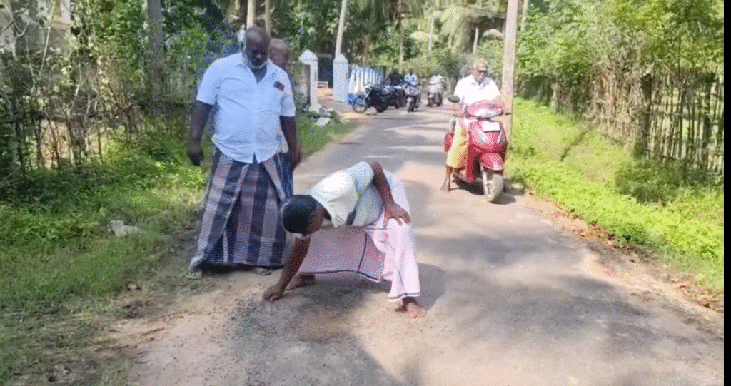 போடப்பட்டு நான்கு மாதத்துக்குள்ளையே பள்ளம் ஏற்பட்டு சேதம் அடைவதாக பொதுமக்கள் புகார்