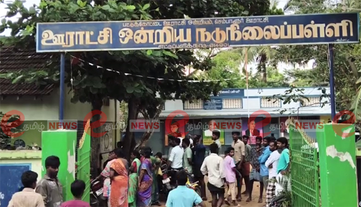 தஞ்சை மாவட்டம், பட்டுக்கோட்டை அடுத்த எட்டுப்புலிகாடு கிராமத்தில் ஊராட்சி ஒன்றிய நடுநிலைப்பள்ளி உள்ளது. இந்த பள்ளியில் 5 ஆம் வகுப்பு படித்துவரும் மாணவி ஒருவரை கடந்த 24ம் தேதி அதே பள்ளியில் ஆசிரியராக பணிபுரிந்துவரும் பாஸ்கர் (53) என்பவர் பாலியல் சீண்டல் செய்ததாக கூறப்படுகிறது. அந்த மாணவி வீட்டுக்குச் சென்றவுடன் இது குறித்து தனது தாயாரிடம் கூறியுள்ளார். இதனால் ஆத்திரமடைந்த மாணவியின் பெற்றோர் நேற்று முன்தினம் மாலை திடீரென பள்ளி முன்பு மற்ற பள்ளி மாணவ, மாணவிகள், அவரவர்களின் பெற்றோர்கள் மற்றும் பொதுமக்களுடன் திரண்டனர். இதையடுத்து சம்பவ இடத்திற்கு வந்த பட்டுக்கோட்டை தாலுக்கா போலீசாரை பெற்றோர்கள் முற்றுகையிட்டு அவர்களிடத்தில் வாக்குவாதத்தில் ஈடுபட்டனர். இதனால் பெரும் பரபரப்பு ஏற்பட்டது. அதனைத் தொடர்ந்து போலீசார் ஆசிரியர் பாஸ்கரை விசாரணைக்காக காவல் நிலையத்திற்கு அழைத்துச் சென்றனர்.