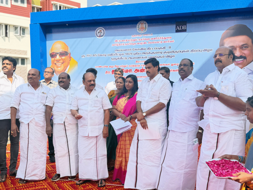 இந்த குடியிருப்புகளை குறு, சிறு மற்றும் நடுத்தர தொழில் நிறுவனங்கள் துறை அமைச்சர் தா.மோ.அன்பரசன், உயர்கல்வித் துறை அமைச்சர் கோவி.செழியன் ஆகியோர் திறந்து வைத்தனர். தொடர்ந்து பயனாளிகளுக்கு வீடுகள் ஒதுக்கீட்டு ஆணைகளை வழங்கினர்.