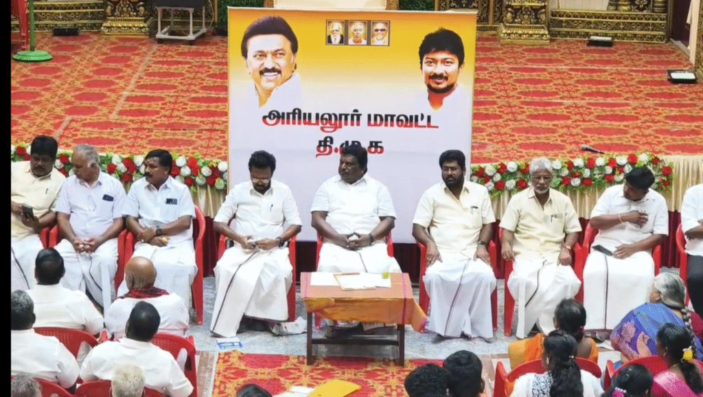 அரியலூர் மாவட்ட திமுக செயற்குழு கூட்டம் மாவட்ட செயலாளரும், போக்குவரத்து மற்றும் மின்துறை அமைச்சருமான எஸ்.எஸ்.சிவசங்கர் தலைமையில் இன்று அரியலூரில் நடைபெற்றது.