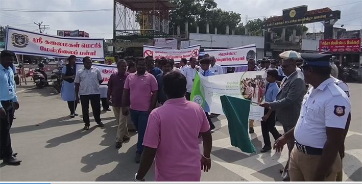 போதையின் பாதை சாவின் பாதை என்ற பதாகைகளை ஏந்தி கோஷங்களை எழுப்பியவாறு பேரணியாக சென்றனர்.