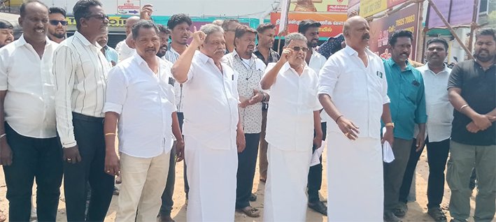 மேலும் இந்தக் கடைகளுக்கு உரிய பார்க்கிங்கையும் தனியார் ஜவுளி நிறுவனம் ஆக்கிரமித்துள்ளதாகவும் இதனால் வியாபாரம் சரிவர நடப்பதில்லை. வியாபாரம் இல்லாததால் பல கடைகள் பூட்டியே கிடப்பதாகவும் குற்றச்சாட்டை வணிகர்கள் தரப்பில் எழுப்பி வந்தனர். இந்நிலையில் நேற்று மதியம் தஞ்சை மாவட்ட வணிகர் சங்க கூட்டமைப்பு நிறுவனத் தலைவர் ராஜா சீனிவாசன், மாவட்ட செயலாளர் அப்துல்நசீர், மாவட்டத் தலைவர் முருகேசன், வணிகர் சங்க பேரவை மாநகர செயலாளர் வாசுதேவன் மற்றும் ஏராளமான நிர்வாகிகள், வணிகர்கள் திருவள்ளுவர் வணிக வளாகம் முன்பு ஆர்ப்பாட்டத்தில் ஈடுபட்டனர்.