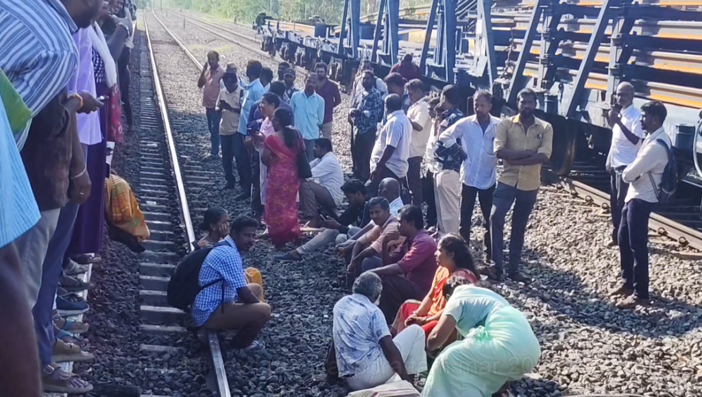 சுமார் 25 நிமிடங்களுக்கு மேலாக நீடித்த இந்த ரயில் மறியல் போராட்டத்தால் அங்கு சிறிது நேரம் பரபரப்பு ஏற்பட்டது.