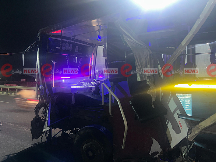 இருந்த இருக்கையில் தஞ்சாவூர் பேராவூரணி பகுதியை சேர்ந்த சந்திர போஸ் மனைவி செல்வி (52) அமர்ந்திருந்தார் அவரது இருக்கைக்கு பின் இருக்கையில் தஞ்சாவூர் விஜயகுமார் என்பவரின் மகள் கல்லூரி மாணவி அட்சயா (20) அமர்ந்து இருந்தார் பஸ் துவாக்குடி முன்பு அரசு அச்சகம் எதிரில் வந்து கொண்டிருந்த பொழுது அங்கு இருந்த பேரிகாடில் வளைந்து திரும்பி ராவுத்தான் மேடு பகுதிக்கு வலது புறம் திரும்புவதற்காக நின்று கொண்டிருந்த ட்ரெய்லர் லாரி மீது பஸ் இடது பகுதி எதிர்பாராத நிலையில் மோதியது இதில் கண்டக்டர் தலையில் அடிபட்டு படுகாயம் அடைந்தார் அடுத்த இருக்கையில் அமர்ந்திருந்த செல்வி நசுங்கிய நிலையில் சம்பவ இடத்திலேயே இறந்தார் .
