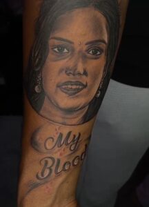 உயிரிழந்த சகோதரி அஜித்தா புகைப்படத்தை தனது கைகளில் பச்சை குத்தியுள்ளார்.
