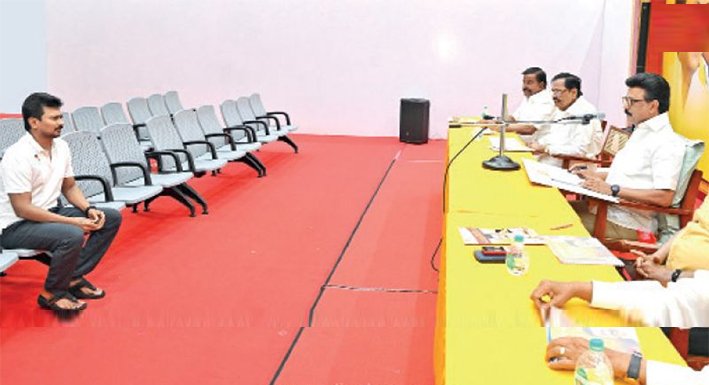 சென்னை சேப்பாக்கம்-திருவல்லிக்கேணி தொகுதியில் போட்டியிட விருப்ப மனு அளித்திருந்த உதயநிதி ஸ்டாலினிடம் முதல்வர் மு.க.ஸ்டாலின் மற்றும் கட்சியின் மூத்த நிர்வாகிகள் நேர்காணல் செய்தனர். அப்போது உதயநிதி ஸ்டாலினிடம், முதல்வர் மு.க.ஸ்டாலின், ‘‘சேப்பாக்கம்-திருவல்லிக்கேணி தொகுதியில் திமுகவின் வெற்றி வாய்ப்பு எப்படி இருக்கிறது, அந்தத் தொகுதியில் எம்எல்ஏவாக இருந்து என்னென்ன திட்டங்களை செய்துள்ளீர்கள்,