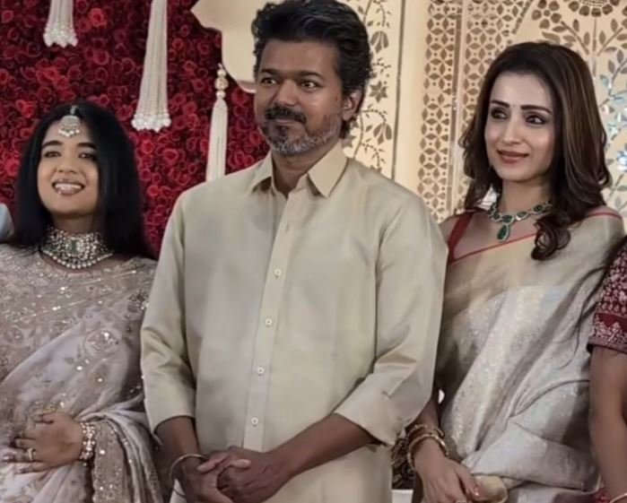 சென்னையில் நடைபெற்று வரும் திருமண விழாவில் நடிகர் விஜய் மற்றும் த்ரிஷா ஒன்றாக கலந்துகொண்டார்.