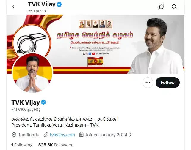 X-தளத்தில் Cover photoவை மாற்றினார் விஜய்
