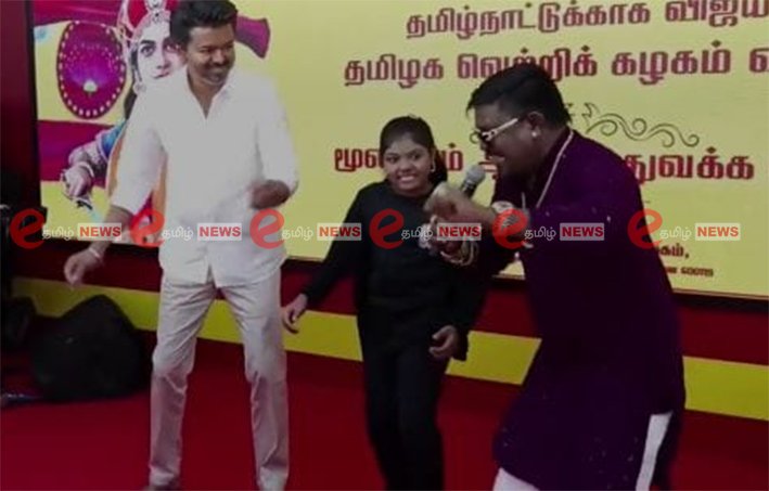 கு முருகன் படத்தை வழங்கியதோடு ‘உங்க கூட டான்ஸ் ஆடலாமா’ என ஒரு கோரிக்கையும் வைத்தார். இதனால் குஷியான வேல்முருகன் ‘தளபதி தளபதி வாழ்க’ என பாட, விஜய் குத்தாட்டம் போட என அரங்கமே அதிர்ந்துபோனது.