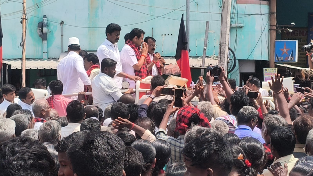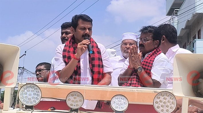 கரூர் மாவட்டம், அரவக்குறிச்சி சட்டமன்ற தொகுதி திமுக வேட்பாளராக போட்டியிடும் மொஞ்சனூர் இளங்கோவை ஆதரித்து, அரவக்குறிச்சி ஏவிஎம் கார்னர் பகுதியில் கரூர் சட்டமன்ற உறுப்பினரும், முன்னாள் அமைச்சருமான செந்தில் பாலாஜி பிரச்சாரம் செய்தார். இந்த பிரச்சாரக் கூட்டத்தில் திமுக, காங்கிரஸ், விசிக உள்ளிட்ட கூட்டணி கட்சி நிர்வாகிகள் தொண்டர்கள் என பலர் கலந்து கொண்டனர்.