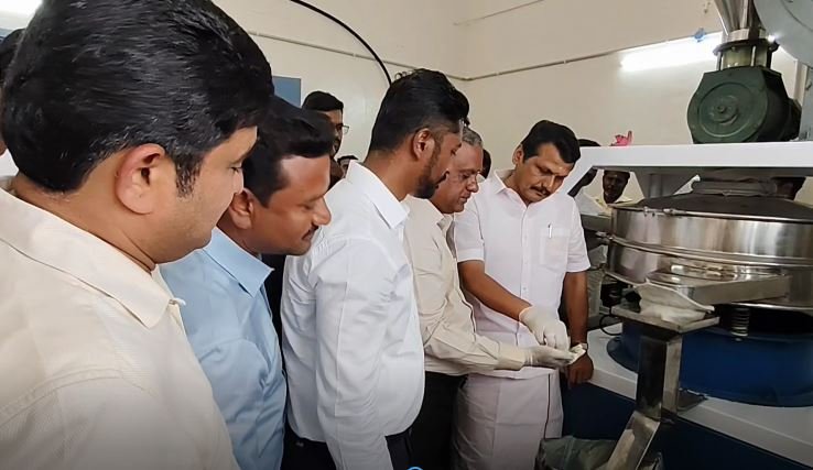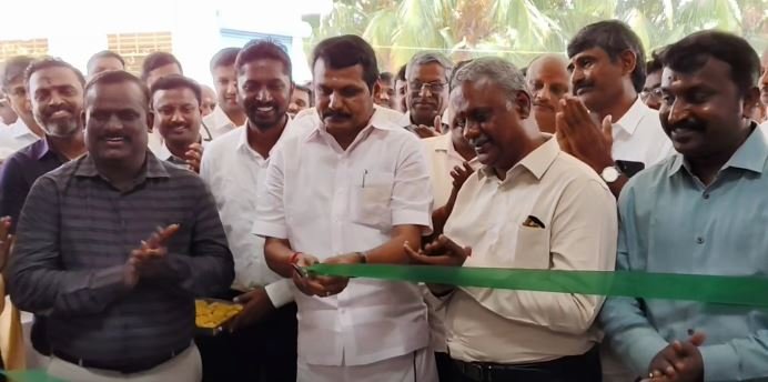 முன்னாள் அமைச்சரும் கரூர் எம்எல்ஏவுமான செந்தில் பாலாஜி முருங்கை மதிப்பு சேர்க்கை செயலாக்க மையத்தினை ரிப்பன் வெட்டி திறந்து வைத்தார்.