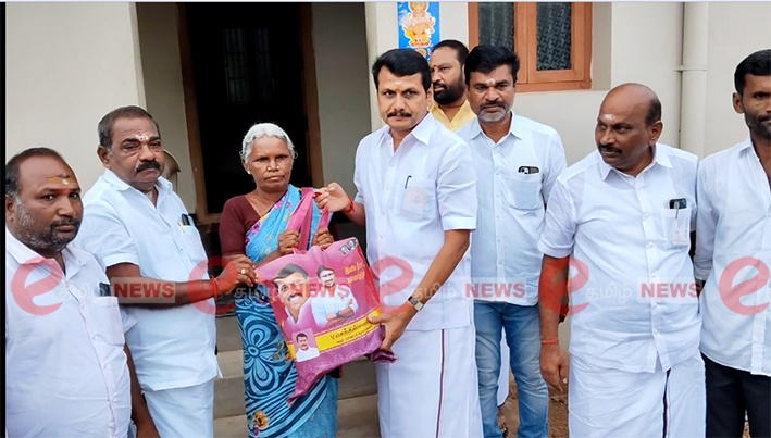 கரூர் மாநகராட்சிக்குட்பட்ட கோடங்கிபட்டி பகுதியில் இன்று திராவிட முன்னேற்றக் கழகத்தின் சார்பாக பொதுமக்களுக்கு நலத்திட்ட உதவிகளை வழங்கிய முன்னாள் அமைச்சர் செந்தில் பாலாஜி அப்பகுதியில் உள்ள வீடுகளுக்கு சென்று நேரடியாக நலத்திட்ட உதவிகளை வழங்கினார்.
