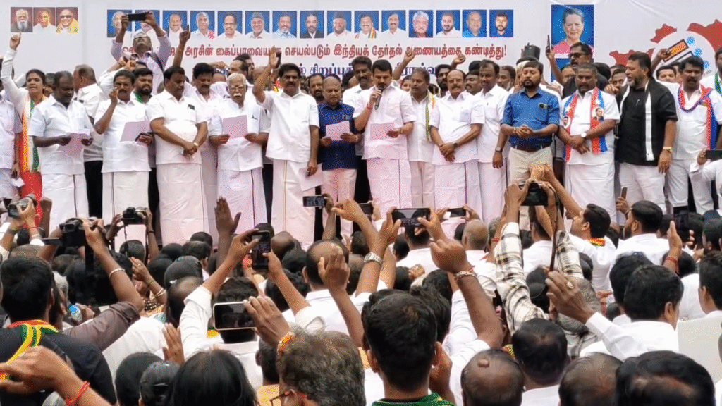 அதன் ஒரு பகுதியாக SIR செயலை கண்டித்து கோவை சிவானந்தாகாலனி பகுதியில் மதசார்பற்ற முற்போக்கு கூட்டணி சார்பில் கண்டன ஆர்ப்பாட்டம் நடைபெற்றது. முன்னாள் அமைச்சர் செந்தில் பாலாஜி தலைமையில் நடைபெற்ற இந்த ஆர்ப்பாட்டத்தில் திமுக, கொங்குநாடு மக்கள் தேசிய கட்சி, கம்யூனிஸ்ட், ஆதிஇந்திய தேசிய லீக், இந்திய ஒன்றிய முஸ்லீம் லீக் கட்சிகள் உட்பட பல்வேறு கட்சிகள் அமைப்புகளை சார்ந்த ஆயிரத்துக்கும் மேற்பட்டோர் பங்கேற்றனர்.