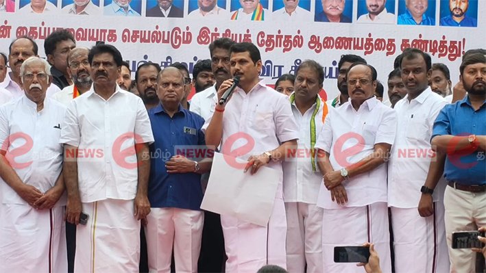 இந்த ஆர்ப்பாட்டத்தில் உரையாற்றிய முன்னாள் அமைச்சர் செந்தில்பாலாஜி,