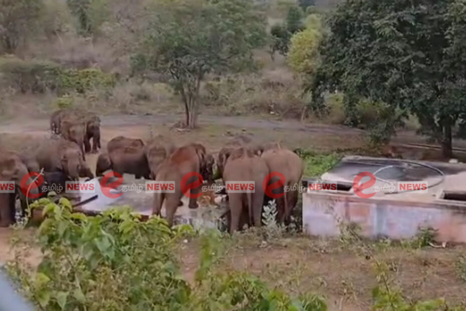 இந்நிலையில் கோவை மாவட்டம் தடாகம் பள்ளத்தாக்கு பகுதியில் அமைந்து உள்ள 24 வீரபாண்டி கிராமத்திற்கு உட்பட்ட சலீம் அலி பறவைகள் ஆராய்ச்சி நிலையத்தில் யானைகள் கூட்டமாக வந்து வனப்பகுதி ஒட்டி வனத்துறையினர் தொட்டியில் நிரப்பி உள்ள தண்ணீரை அருந்தும் காட்சியை அங்கு இருந்த ஒருவர் அவரது செல்போனில் வீடியோ பதிவு செய்துள்ளார். தற்போது இந்த வீடியோ சமூக வலைதளங்களில் வைரலாக பதிவு வருகிறது.மேலும் வனப்பகுதியில் வறச்சி போக்க அதிக அளவில் தண்ணீர் தொட்டி அமைக்க வேண்டுமென வனவிலங்கு ஆர்வலர்கள் கோரிக்கை விடுத்து உள்ளனர்.
