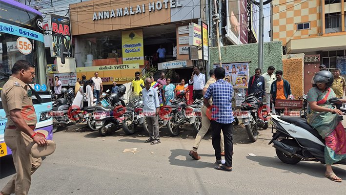 ஏற்கனவே அந்த பகுதியில் உள்ள வங்கி வளாகம் பகுதியில் அனைத்து வங்கி ஊழியர்கள் சங்கம் சார்பில் ஆர்ப்பாட்டம் நடைபெற்றதால், வாகனங்கள் ரோட்டில் நிறுத்தப்பட்டு போக்குவரத்து பாதிக்கப்பட்டு இருந்தது.